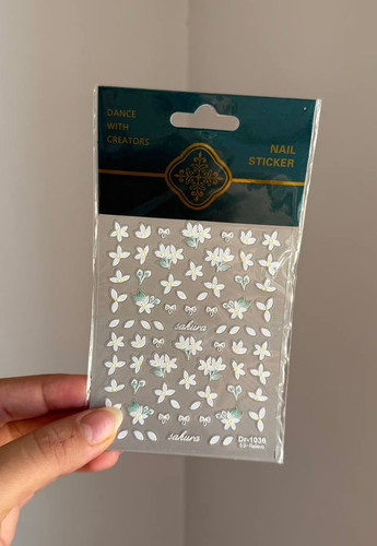 لنز ناخن برجسته روسی گل سفیدناموجود