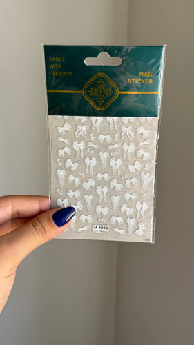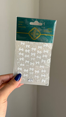 لنز ناخن برجسته روسی طرح پاپیون سفید نگین دارناموجود