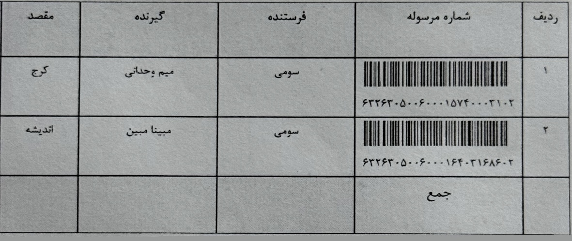 کد رهگیری ۶ فروردین ۱۴۰۵